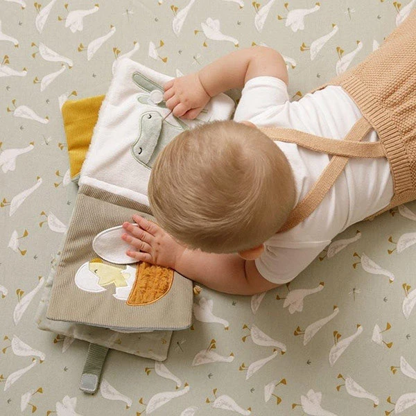 Met dit activiteitenboekje Little Goose beleeft je kindje veel plezier aan het ontdekken van de verschillende dieren, materialen en activiteiten in het babyboekje. Het boekje knispert, bevat een rammelaar, mini knuffeldier, verschillende labels om aan te voelen en een spiegel. Ideaal voor het prikkelen van de zintuigen en de ontwikkeling van de hand-oogcoördinatie.
