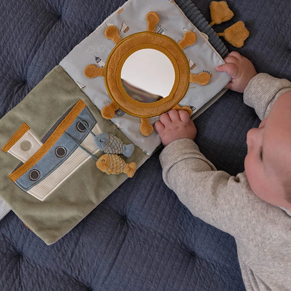 Met dit activiteitenboekje Sailors Bay beleeft je kindje veel plezier aan het ontdekken van de verschillende dieren, materialen en activiteiten in het babyboekje. Het boekje knispert, bevat een rammelaar, mini knuffeldier, verschillende labels om aan te voelen en een spiegel. Ideaal voor het prikkelen van de zintuigen en de ontwikkeling van de hand-oogcoördinatie.