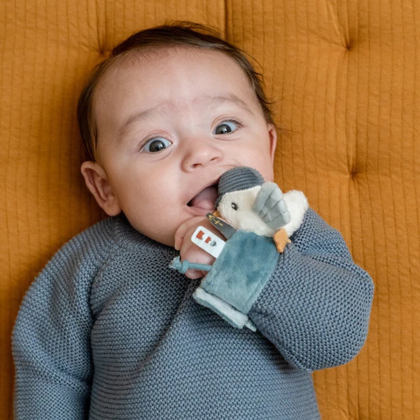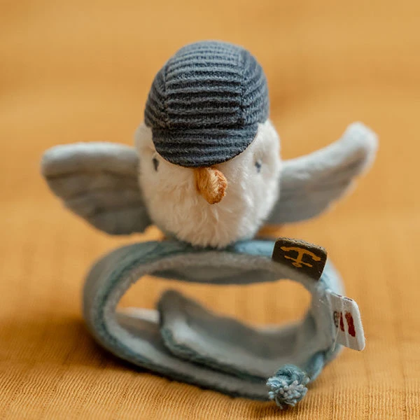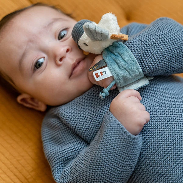 Met deze armbandrammelaar uit de Sailors Bay collectie van Little Dutch stimuleer je jouw baby om te bewegen en te ontdekken. Zo zal je kleintje bij elke beweging genieten van het geluid van de rammelaar. De polsrammelaar is gemaakt uit heerlijk zacht materiaal, comfortabel om te dragen en kan ook om de enkel worden geplaatst als je baby zijn of haar voetjes verkent. Je baby zal genieten van de knisperende vleugeltjes en het kleine koordje aan deze rammelaar, die met de vingertjes te ontdekken zijn.