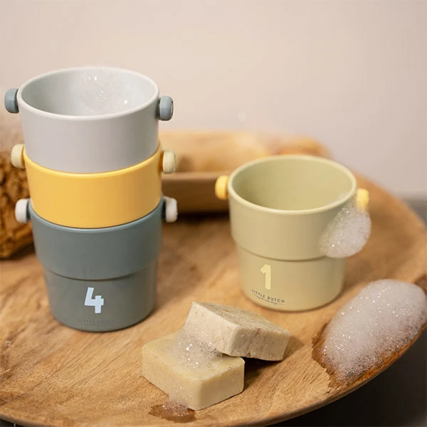 Met dit badspeelgoed bestaande uit 4 badbekers in het Little Goose thema van Little Dutch wordt in bad gaan super leuk! Stapelen, vullen, gieten en spetteren! Je kindje zal extra genieten tijdens het badderen. Spelen met deze kleine emmertjes helpt bij de ontwikkeling van motorische vaardigheden. Stapel ze op elkaar om een grote toren te bouwen en omver te werpen. Of vul ze met water en zie er verschillende vormen uitstromen. Spetters en plezier gegarandeerd!