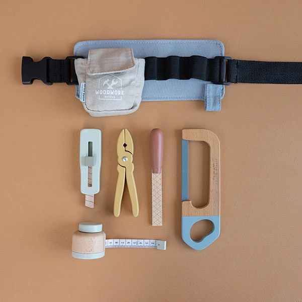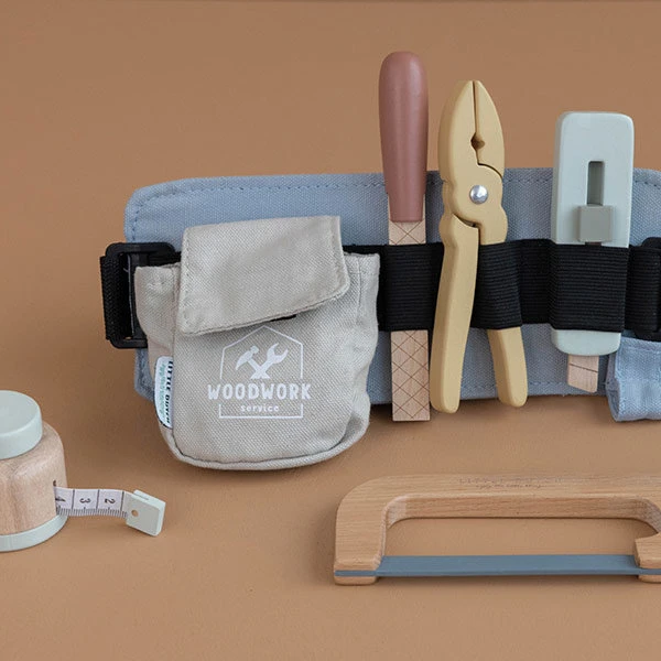 Deze gereedschapsgordel is is super leuk voor kleine klussers! Doe je gordel om, het is tijd om je gereedschap te gebruiken! Er zijn zo veel dingen in huis die moeten worden gemaakt. Met je eigen meetlint, tang, stanleymes, vijl en figuurzaag heb je al het gereedschap dat je nodig hebt voor kleine klusjes bij de hand. Peuters kopiëren maar al te graag hun ouders. Deze verstelbare gereedschapsriem brengt de innerlijke klusser in hen naar buiten. Deze geweldige set met 5 verschillende stukken gereedschap stimuleert rollenspel, maar ook creativiteit en motoriek! Combineer met de werkbank en gereedschapskist om het gereedschapsassortiment uit te breiden en je kleintje een speciale werkruimte te geven.