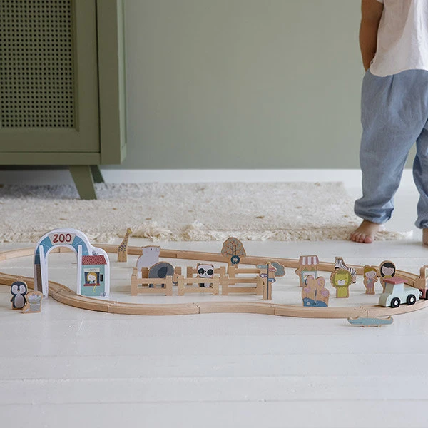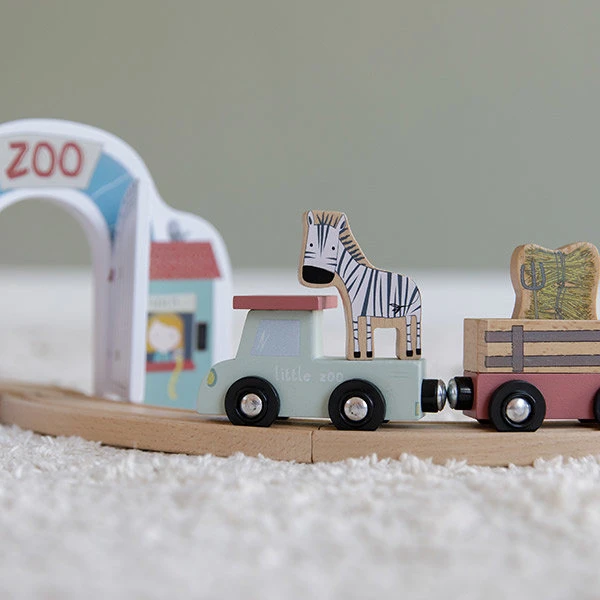 Deze dierentuin is een mooie 28-delige houten speelset, die perfect gekoppeld kan worden aan de treinbaan XXL van Little Dutch. Het is prachtig houten speelgoed dat de fantasie bij kinderen aanspreekt. Maak van de laatste stop met de trein een gezellige dag in de dierentuin! De 28-delige set bestaat onder andere uit een ticketbalie, een onderhoudswagen met trailer, 10 dieren en een ijskraam. Elk dier past in de trailer voor uren speelplezier. De voertuigen passen op de treinbaan, waardoor ze door de dierentuin kunnen rijden. Uitbreiding sets voor de treinbaan zijn beschikbaar. Gemaakt van duurzaam en FSC-gecertificeerd hout. Bij deze set zijn geen rails stukken inbegrepen.