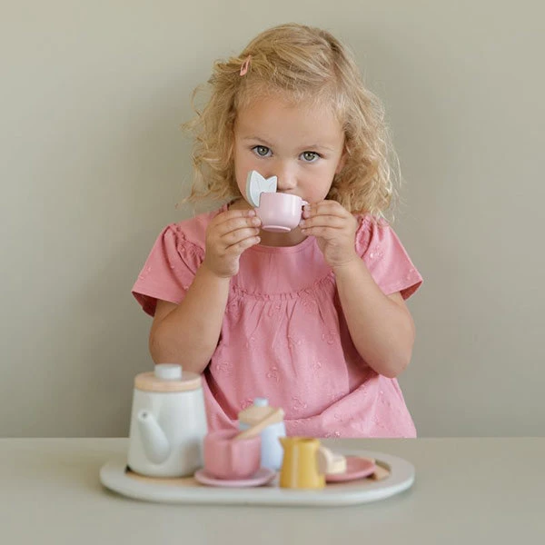 Met dit schattige houten theeservies wordt samen theedrinken super leuk! Je kleintje kan heerlijke kopjes thee schenken met melk of suiker, of een schijfje citroen of takje munt. Dit theeservies wordt geleverd met alle ingrediënten voor een gezellig theekransje met vriendjes en vriendinnetjes.