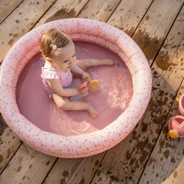 Dit opblaasbaar zwembad in Little Pink Flowers thema van Little Dutch geeft verkoeling aan je kindje op warme dagen. Het zwembad is eenvoudig op te blazen en neer te zetten in je tuin of op het terras. Met een laagje water erin heeft je kindje een hoop speelplezier. Het zwembadje heeft een grootte van 80 cm.