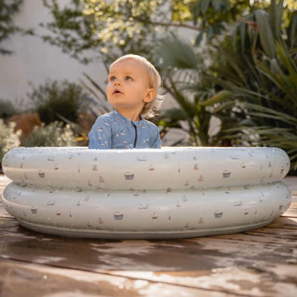 Dit opblaasbaar zwembad in Sailors Bay thema van Little Dutch geeft verkoeling aan je kindje op warme dagen. Het zwembad is eenvoudig op te blazen en neer te zetten in je tuin of op het terras. Met een laagje water erin heeft je kindje een hoop speelplezier. Het zwembadje heeft een grootte van 80 cm.
