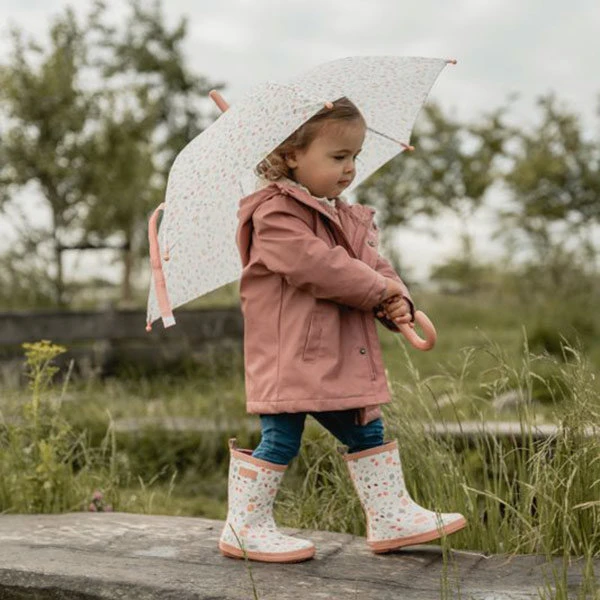 Onder deze paraplu in prachtig Flowers & Butterflies design van Little Dutch blijf je veilig en droog. Met deze vrolijke paraplu wil je kleintje maar al te graag naar buiten op een regenachtige dag. Deze lichtgewicht paraplu is waterdicht, sluit met klittenband, is 57 cm hoog, heeft een doorsnede van 66 cm,, en een J-vormig handvat .
