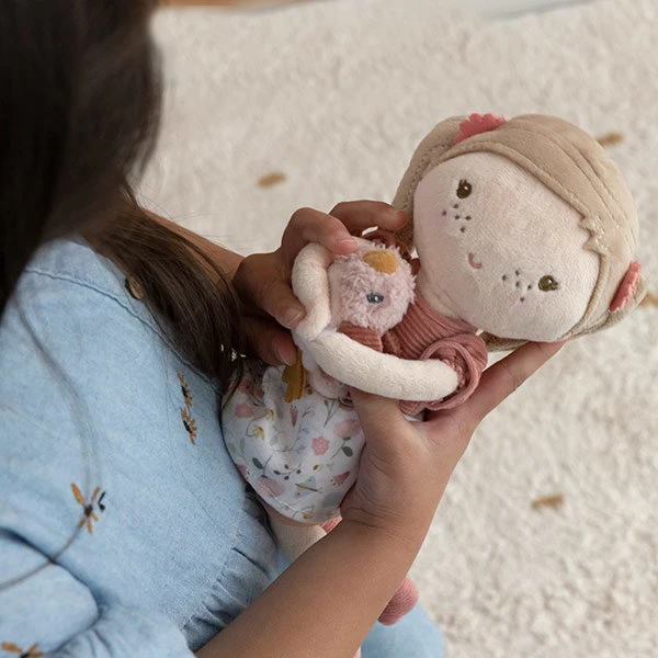 Deze lieve pluche knuffelpop Anna in haar schattige rokje kan niet wachten om geknuffeld te worden. Ze vindt het heerlijk om rond te huppelen in tuinen vol bloemen en vlinders. Samen met haar vogeltje wordt Anna je nieuwe beste vriendin. Ze zal er altijd voor je zijn als je wilt spelen of een dikke knuffel nodig hebt. Wat wordt jullie eerste uitje samen? Misschien een wandeling door de tuin met de bijpassende houten poppenwagen!? Anna is zacht en knuffelig, 35 cm lang en is verpakt in een mooie opbergdoos.