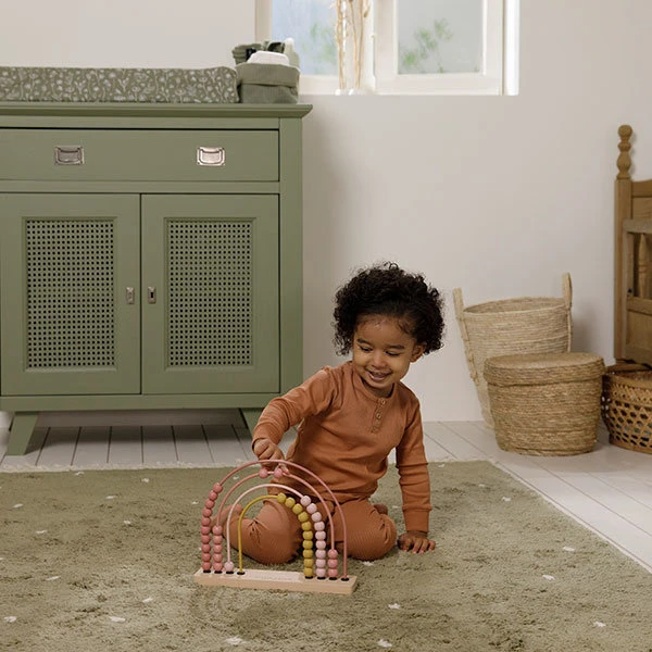 Met dit regenboog telraam pink wordt leren tellen super leuk. Het telraam is gemaak van gekleurde ijzeren bogen op een houten voet, samen vormen ze een mooie regenboog. Elke boog bevat 10 houten kralen. Dit telraam is niet enkel leerzaam, maar staat bovendien nog eens zeer mooi als decoratie in de kinderkamer.