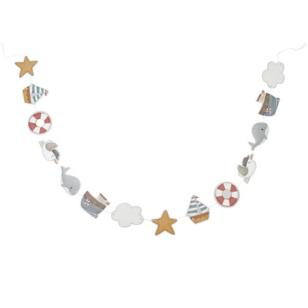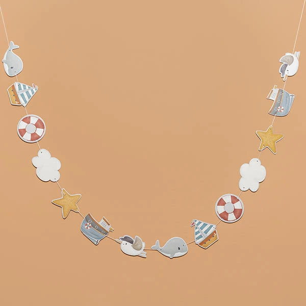 Met deze slinger in prachtig Sailors Bay design van Little Dutch fleur je de kinderkamer helemaal op. De slinger is 200 cm lang en gedecoreerd met verschillende mooie kartonnen figuren die tot de verbeelding van je kindje spreken. Combineer de slinger met andere items uit de collectie zoals bedlinnen, een vloerkleed of knufdieren.